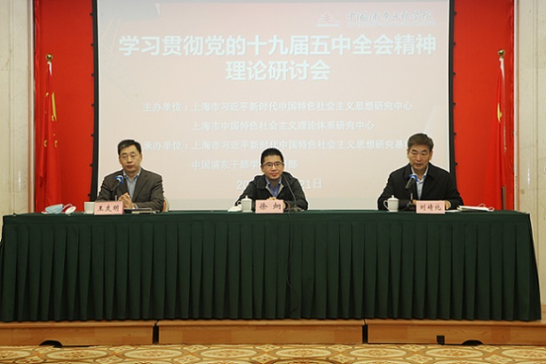 11月21日,学习贯彻党的十九届五中全会精神理论研讨会在学院举行。研讨会由上海市习近平新时代中国特色社会主义思想研究中心、上海市中国特色社会主义理论体系研究中心主办,上海市习近平新时代中国特色社会主义思想研究基地(中国浦东干部学院教学研究部)、中国浦东干部学院科研部承办。中共上海市委宣传部副部长、上海市习近平新时代中国特色社会主义思想研究中心常务副主任徐炯,中国浦东干部学院副院长刘靖北出席会议并致辞。来自上海市社科联、上海社科院、复旦大学、同济大学、上海财经大学、国防大学、解放日报社和中国浦东干部学院等单位的专家学者作了主旨发言。中国浦东干部学院科研部副主任王友明、王永杰分别主持会议。