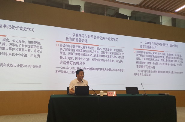 6月16日下午,副院长郑金洲为教务部党支部、对外交流部党支部、培训开发中心(网络学院)党支部、人力资源部党支部、国际合作培训教研分部党支部、信息技术部党支部近80名党员作题为“认真学习习近平总书记关于党史学习教育的重要论述、切实开足开好党史教育必修课”专题党课,教务部主任何立胜主持党课学习活动。 郑金洲通过梳理近年来习近平总书记关于党史学习教育的重要论述,从意义、目的、内容、教材、方法等五个方面系统归纳了习近平总书记对党史学习教育的部署和要求。在此基础上,他结合学院教学中心工作,提出要切实开足开好党史教育必修课,推动学院教学高质量发展。要把党史教育课作为落实学院“五个践行者推动者”的重要举措;要完善党史教育课布局,不断丰富党史教育课内容;要充分挖掘上海以及长三角丰富的红色资源,彰显学院党史教育课程特色;要不断创新方式方法,提高党史教育的针对性和实效性;要推动党史教育与理论教育、专业化能力培训的有机融合,形成党史教育的整体效应和强大合力;要加强师资队伍建设和教学研究,提升讲好党史教育课程的专业水平。 党员们一致认为,本次党课让大家进一步深刻领会了开展党史学习教育的重大意义,增强了作为党的干部教育事业工作者的责任感和使命感。大家表示,打铁还须自身硬,要进一步加强学习,结合主责主业,全力为党员领导干部开足、开好、开成功党史教育必修课,切实推动党史学习教育入脑入心,让信仰之火熊熊燃烧,让精神谱系绵延不绝,让崭新征程高歌奋进。 会后,教务部党支部还召开了党史学习教育专题组织生活会,开展党性分析,交流学习体会。 (教务部党支部 何小蕾)