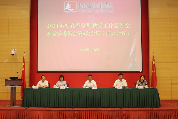 7月8日上午,学院召开2021年度春季学期教学工作总结会暨教学委员会第5次会议(扩大会议)。副院长、教学委员会主任委员郑金洲参加会议并讲话,副院长、教学委员会副主任委员刘靖北主持会议。院务委员张生新、宋今、肖炳南参加会议。 会上,教务部主任何立胜结合学院教育培训工作领导小组会议的部署落实情况,作学院2021年春季学期教学工作汇报,总结教学基本情况,并介绍秋季学期的初步工作打算。赵世明、胡志勇、刘根法、燕乃玲、沈军等部门负责人,立足部门职责和工作实绩,分别就学院教学实施、学员管理、涉外培训、委托培训和网络培训、信息技术支撑教学等方面作了情况汇报。 郑金洲表示,今年适逢建党100周年,也是国家“十四五”规划开局之年,春季学期是学院起好步的关键一学期,教学培训做到了“八个坚持”:坚持把习近平新时代中国特色社会主义思想作为主课、首课、必修课;坚持把党史作为党性教育的必修课、常修课;坚持把专业化能力培训作为教学培训的重点;坚持理论教育、党性教育、专业化能力培训“三育融合”;坚持计划内外协同、线上线下一体并举;坚持疫情防控和教学培训“两手抓”;坚持不断提高培训的针对性和实效性;坚持在研究中工作,在工作中研究。 对于做好秋季学期教学培训各项工作,郑金洲指出,要按照院务委员会部署持续抓好习近平新时代中国特色社会主义思想“三进”工作,认真学习贯彻习近平总书记“七一”讲话精神,结合讲话精神开发相关课程,提升新思想课程质量;切实抓好十九届六中全会精神的教学培训,密切关注、认真学习,及时体现到培训计划、教学计划以及课程中;高质量完成秋季学期的教学培训工作,全力办好重要班次,开展好国际合作培训;以中组部好课程评选为契机,抓好学院的精品课程建设工作;进一步加强教学基础建设,打造系列精品教材,做好现场教学点二次开发,加强需求调研,加强图书馆建设;进一步推进教学改革创新,重点推进“党中央在沪十二年”主题教室建设、教学培训数字化建设,以及案例教学能力建设;进一步加强教师队伍和班主任队伍的建设,提升教学用学术讲政治和用案例讲政治的水平,探索实施组织员制度。 各部门负责人,教学委员会全体成员,副处级以上干部、副高级职称以上教师,教务部、培训部、对外交流与培训开发部、教研部等部门全体人员参加会议。 (教务部 邵玉警)