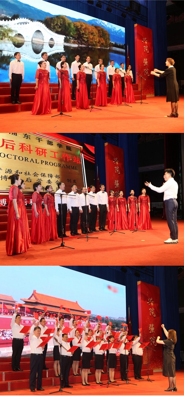 合唱比赛高潮迭起,培训部党支部的《映山红》,教研部党总支《我和我的祖国》,办公厅党支部的《我们走在大路上》,教务部党支部、对外交流党支部合作的《追寻》,人力资源党支部的《不忘初心》,科研部党支部的《社会主义好》,中浦后勤党支部的《歌唱祖国》,信息技术部党支部的《我们都是追梦人》,委托培训与网络学院党支部的《走向复兴》,首首欢歌无不充满了昂扬的精气神,深情表达了对党的忠诚和热爱,整个合唱成为一场每名党员亲身参与的音乐党课,所有人都沉浸在欢庆我们党成立100周年的自豪与感动之中。
