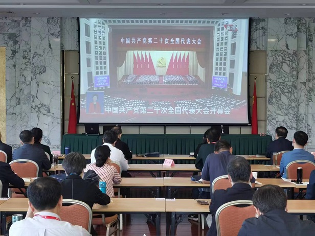 10月16日上午,中国共产党第二十次全国代表大会在人民大会堂隆重开幕。习近平总书记代表第十九届中央委员会向大会作报告。为深入学习宣传贯彻大会精神,根据上级部署和院务委员会要求,学院把组织全体在训学员和全院党员、干部收听收看党的二十大开幕会作为一项重要政治任务来抓,在学院领导的直接领导下,教学培训、信息技术及中浦后勤等部门(单位)做好各项工作,为学员收看开幕会提供好服务保障。