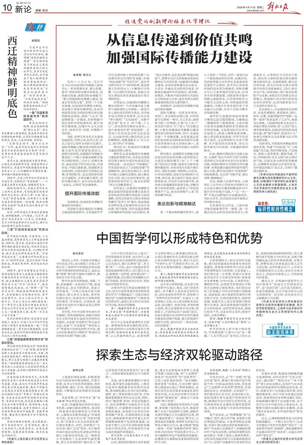 具体而言,可把握经济和治理的两条主线,传递“中国创造”与“上海技能”的力量,用好科技向善、平安城市、美丽上海等视角,展现可感、可知、可体验的社会主义现代化大都市新气象,实现从参与规则到贡献规则、从阐释事实到定义价值的质变,为中国话语真正“走出去、立得住”提供实践样本。
